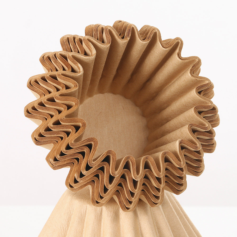 The conical design of this raw wood pulp cone coffee filter paper allows the coffee to fully release the essence of coffee powder during the simmering process.